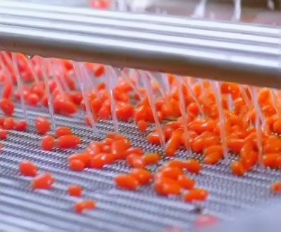本套生產線適用于棗(椰棗、紅棗)、山楂等核果類水果的加工,可生產干果、干鮮果、濃縮果汁及調配果汁飲料等產品。 該生產線主要由鼓泡清洗機、提升機、檢果機、分級機、瀝水風干機、烘干機、去核機、破碎機、萃取罐、分離機、殺菌機及灌裝機等設備組成。本生產線設計理念先進、自動化程度高;主體設備全部采用優質不銹鋼材質制造,完全符合食品加工的衛生要求。