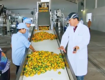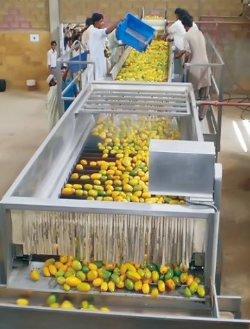 該生產線適用于芒果、菠蘿等熱帶水果的加工,可生產清汁、濁汁、濃縮果汁及果醬等產品。該生產線主要由鼓泡清洗機、提升機、檢果機、毛刷洗果、切塊機、預煮機、去皮去核打漿機、破碎機、帶式榨汁、分離機、濃縮設備、殺菌機及灌裝機等設備組成。本生產線設計理念先進、自動化程度高;主體設備全部采用優質不銹鋼材質制造,完全符合食品加工的衛生要求。