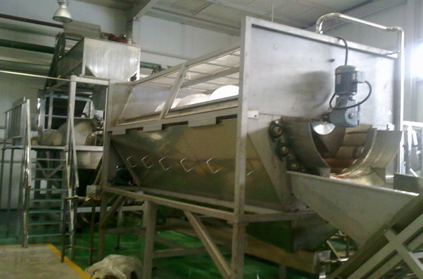 滾筒清洗機主要是借圓形滾筒的轉動,使原料在其中不斷的翻轉,同時用水管噴射高壓水來沖洗翻動的原料,以達到清洗目地。氣泡清洗的同時滾筒轉動,滾筒內壁播料板不停的翻動原料使清洗更均勻,原料上粘有的雜質異物由滾筒孔排出,再由溢水排泄口排出清洗機,滾筒內裝有螺旋推料器,推料器把產品勻速推送出滾筒,由出料提升機把料送出清洗機,